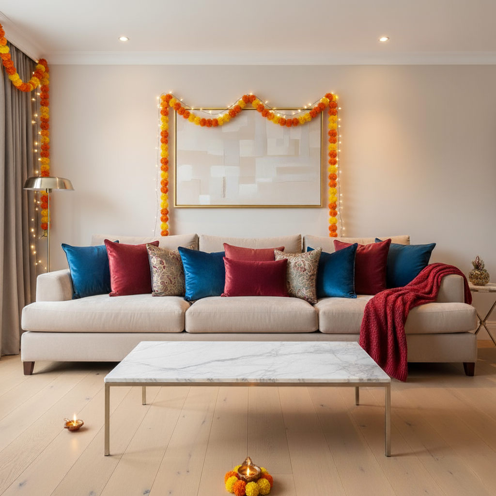 Urban homes often gravitate toward neutral tones that feel timeless and versatile. The trick during festive seasons is to layer in colour without overwhelming the space. Think of it as curating a temporary festive wardrobe for your home.