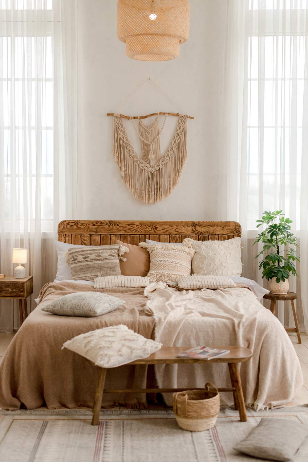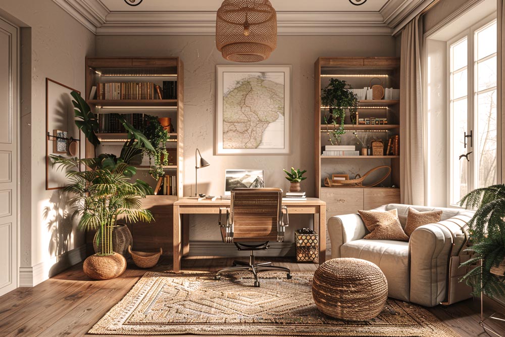 Boho interiors, influenced by Moroccan and Balinese styles, celebrate individuality and artistic expression. Layered rugs, macrame, handwoven textiles, and travel-inspired decor create an eclectic yet cozy ambiance. The beauty of this trend lies in its relaxed, unstructured, and deeply personal aesthetic.