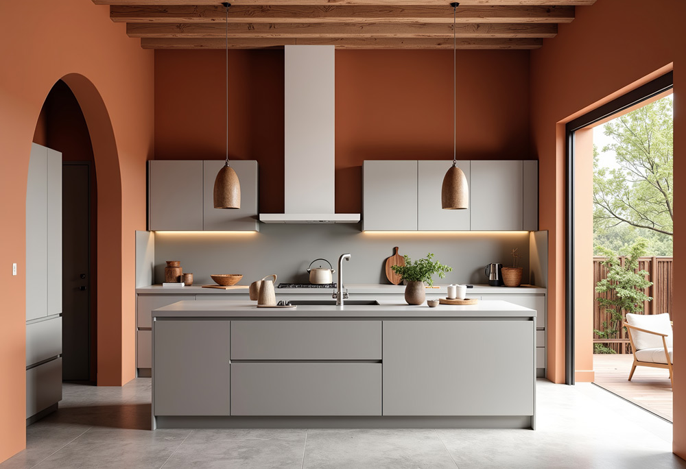 Mediterranean-inspired interiors are making a statement in India, with their warm colors, rustic textures, and airy layouts. White-washed walls, mosaic tiles, and wrought iron accents give homes a timeless yet exotic appeal. Terracotta, ceramic pottery, and wooden beams further enhance the cozy yet elegant aesthetic.