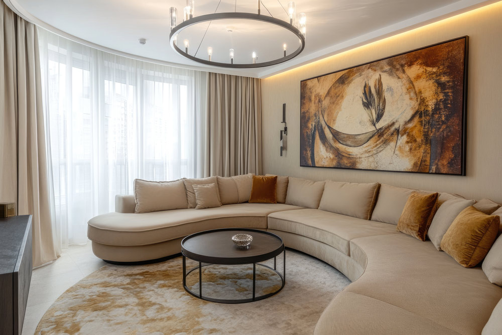 Curved furniture makes a room feel more inviting. Rounded kitchen islands let conversations flow more naturally. A circular mirror adds softness to an otherwise sleek bathroom. Even a semi-arched doorway can change how a space is perceived - more open, more relaxed, more grounded.