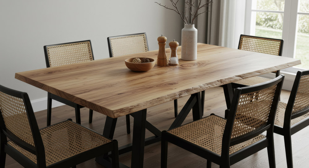 Take a wooden console with metal legs. Or a dining table that combines a solid Sheesham top with minimalist Scandinavian lines. Upholstery is another easy bridge - traditional block prints or Ikat patterns look stunning on modern silhouettes like sleek armchairs or pouffes.