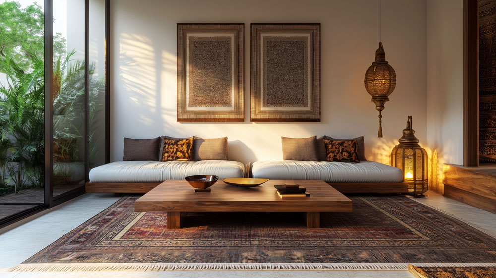 Let’s say you want a living room that feels rooted but fresh. You could pair a carved wood partition with a neutral-toned sectional. Or combine earthy lime plaster walls with industrial lighting and cane accent chairs. The contrast actually makes each piece more noticeable - and more beautiful.