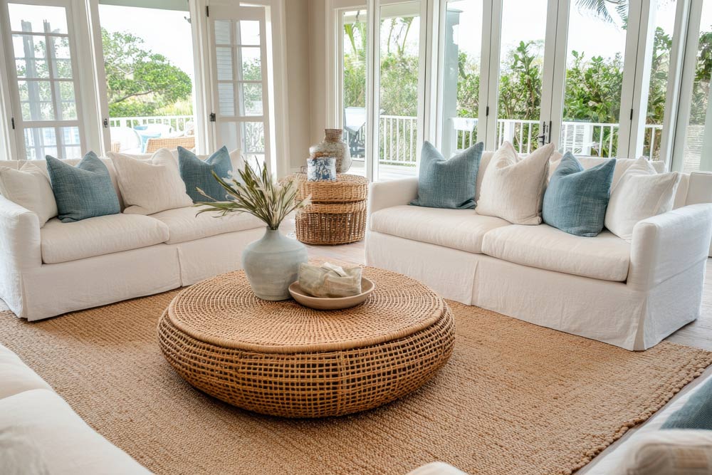 Grey skies can flatten how surfaces appear indoors. To bring back warmth and interest, layering textures is essential. Think rustic cane baskets, matte ceramic vases, loop-pile rugs, and natural wood grains. These tactile elements absorb soft light in ways that feel earthy and inviting.
